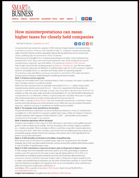 SMART BUSINESS magazine spoke with Quantitax and leading, general CPA firms about some of the most common myths that continue to be perpetuated. Download the article here: